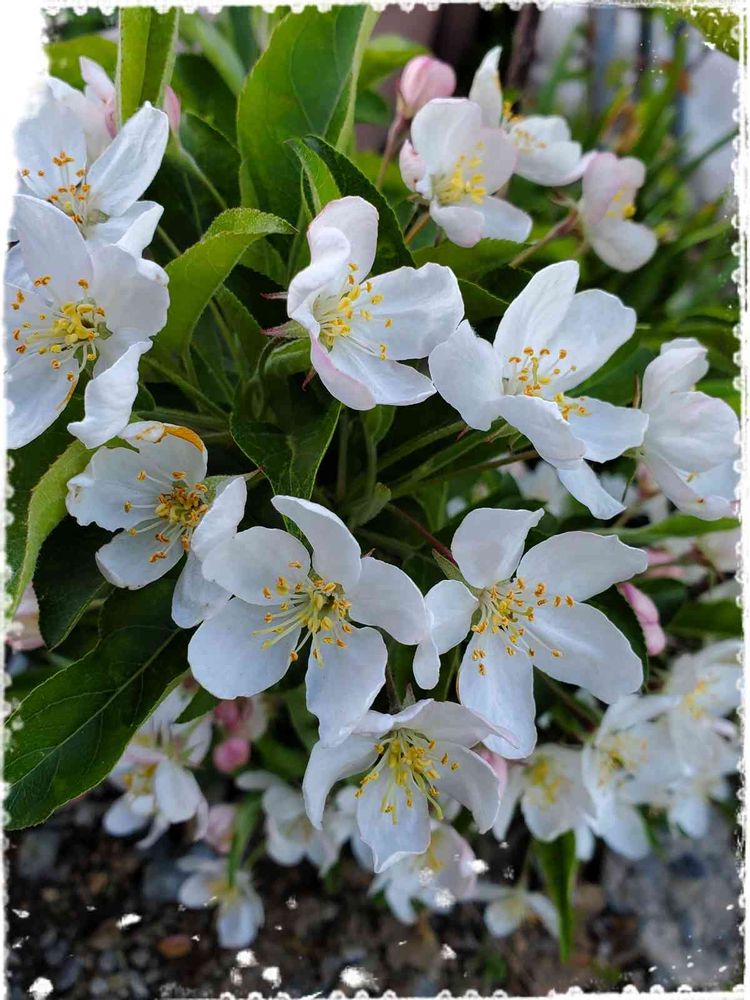 真っ白🤍な実海棠のお花さん綺麗(ლ˘╰╯˘).。.:*♡💮💯