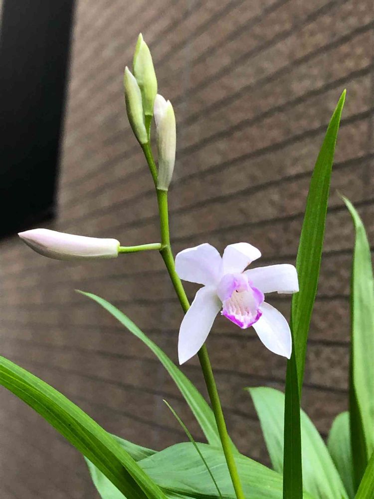東側のフェンス近くの鉢植えで紫蘭の花が