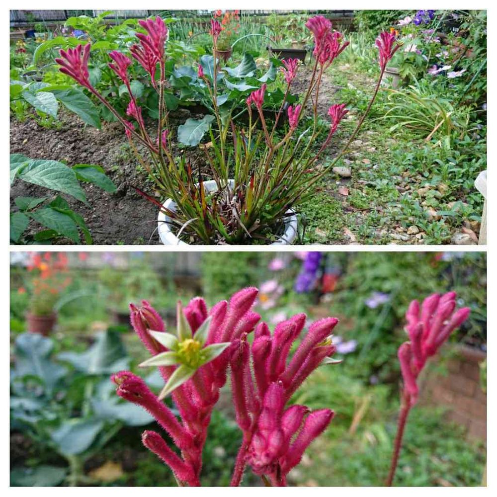 たびちゃん、カンガルーポー、初めてです。なんか笑ってしまう!よく見ていると動物の足のようにもみえるのですが。