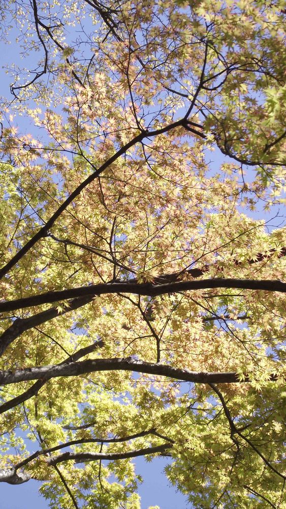 見上げる秋の紅葉もいいけど、春の新緑もいいなぁ…