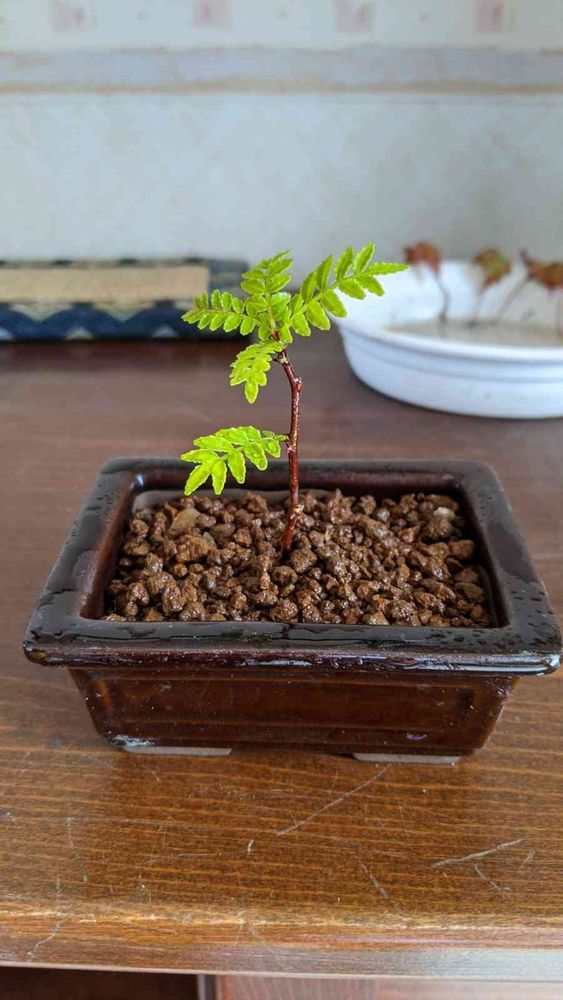 去年旦那が盆栽用に買ってきた山椒の苗を剪定して挿し芽にしたもの。根が出て小さくて可愛かったので豆盆栽風にしてみました。棘はハサミで切ったけど小さいのにちゃんと山椒の香りがします