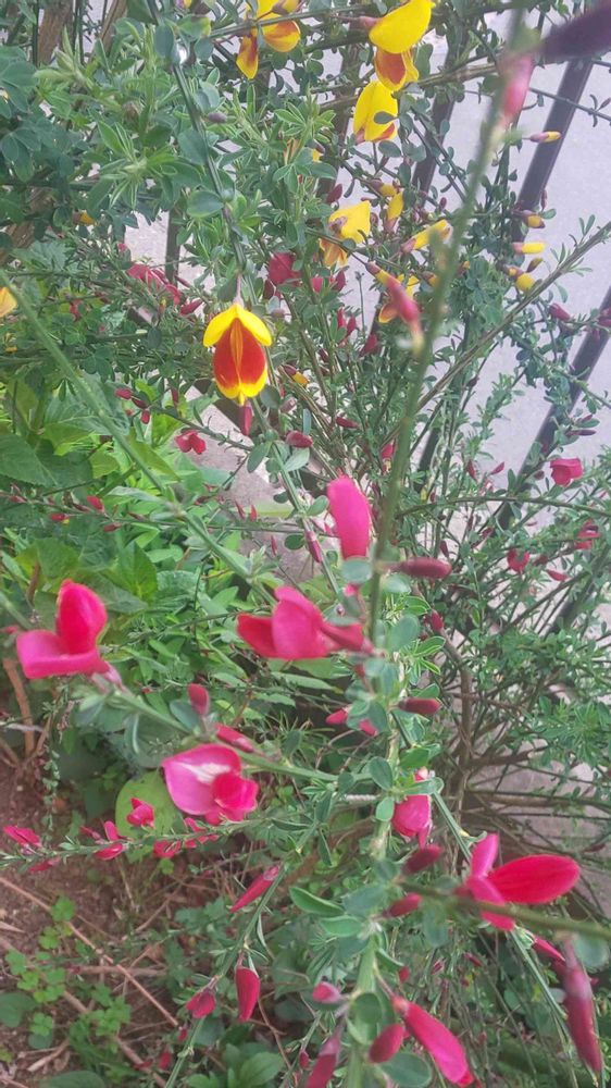 エニシダの赤花も咲き始めたよ😃