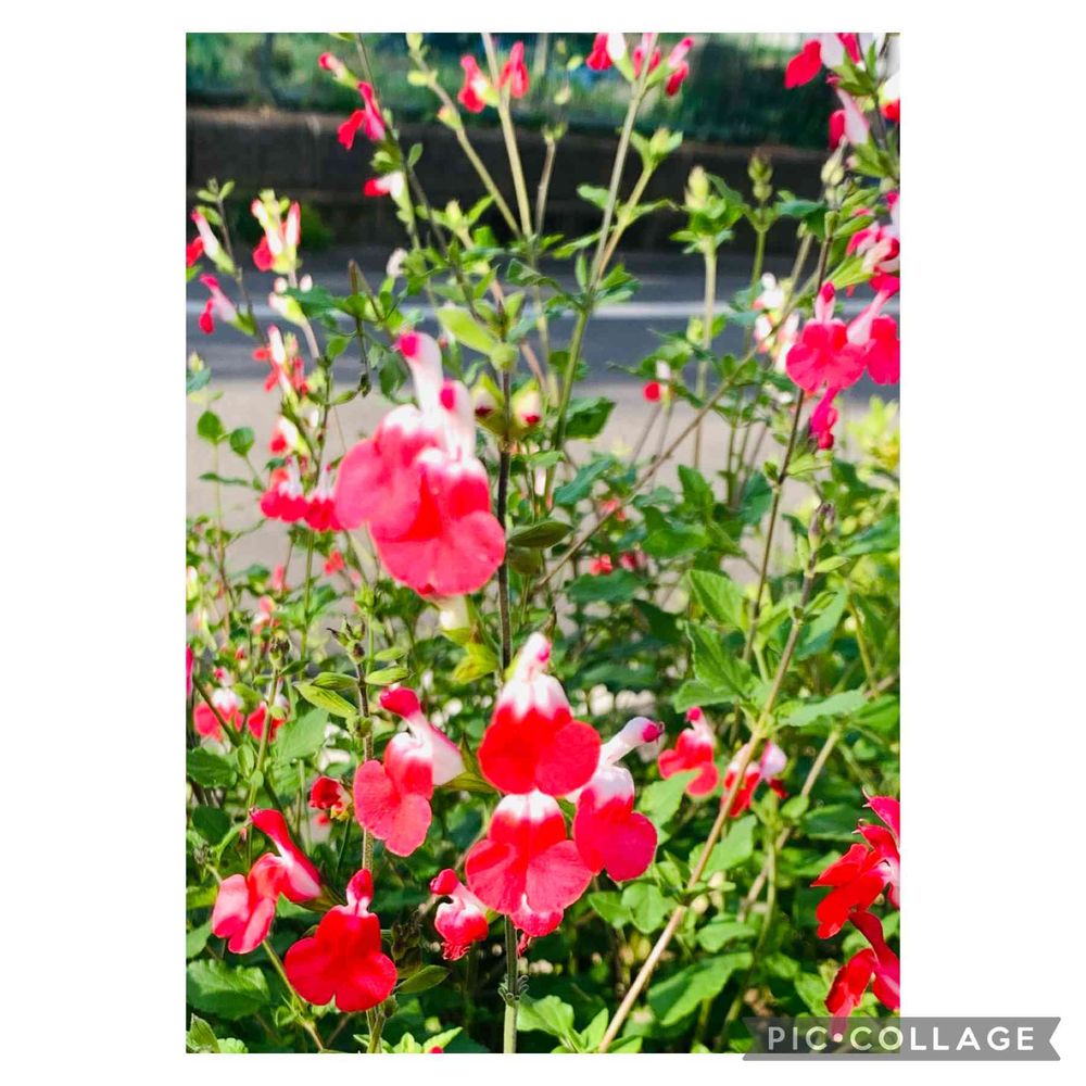 レオとヤエさんのチェリーセージ ホットリップス,花のある暮らし,お散歩路の投稿画像