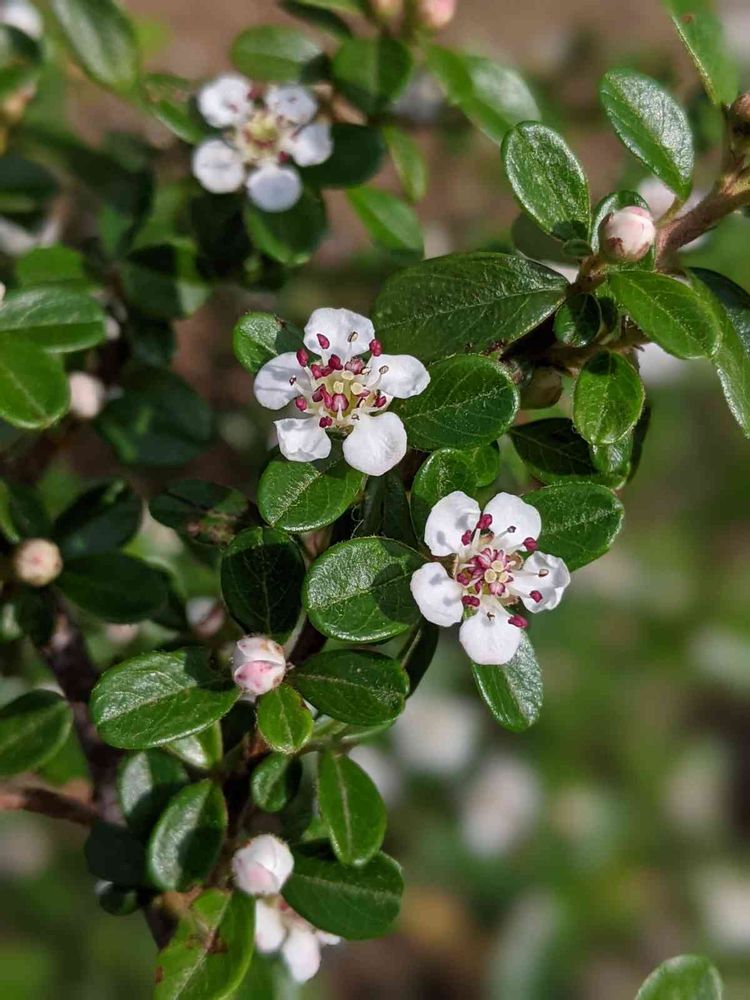 秋に赤い実がたくさん生っていたが、こんなにかわいい花が咲くとは🌼