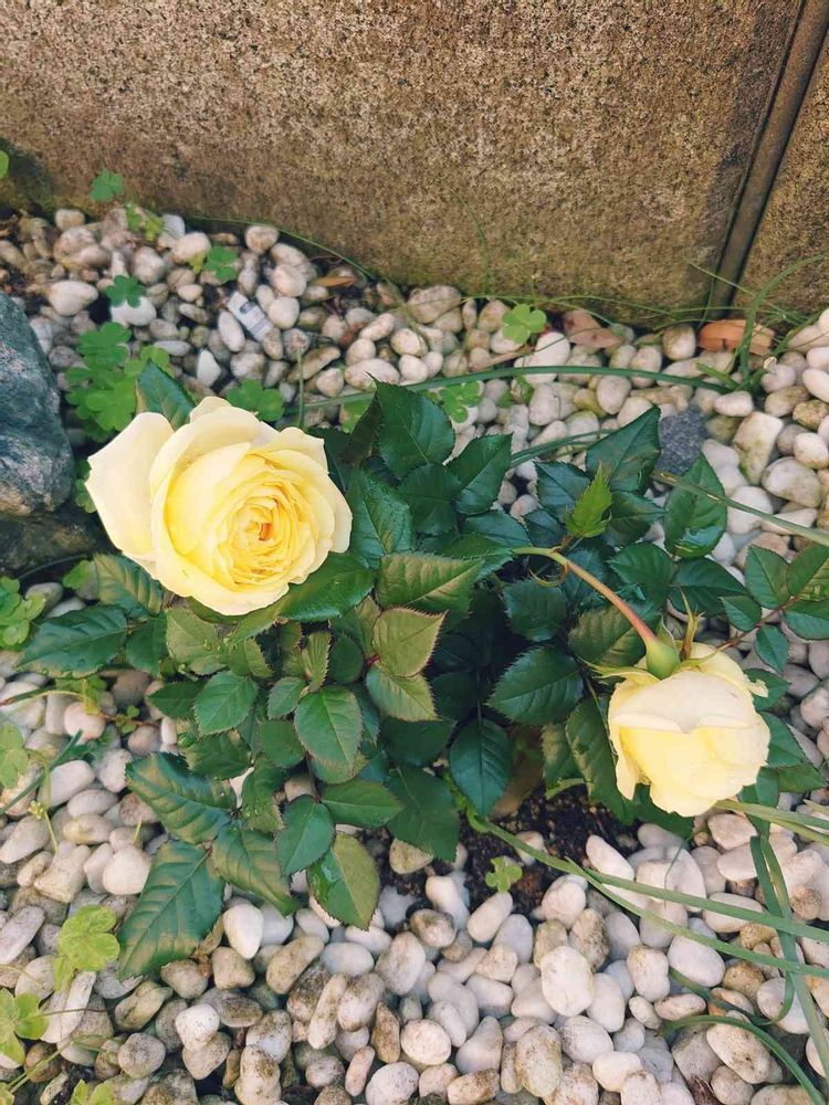 黄色い可愛いバラの花が庭に咲いています✨淡い黄色が可憐な雰囲気💕