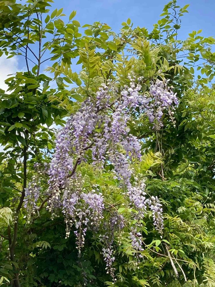 今、山桜に代わって里山に彩りを添えてくれるヤマフジ。近くて見たのは初めてです。淡い紫色が上品❣️遠くて写真は撮りませんでしたが、20メートルはある大木に絡みついている木もありました。粟ヶ岳にて