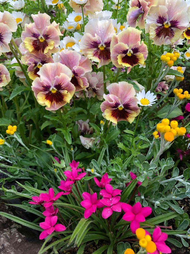 パンジーもまだまだ元気に見えても背が伸びて、倒れて来そうね