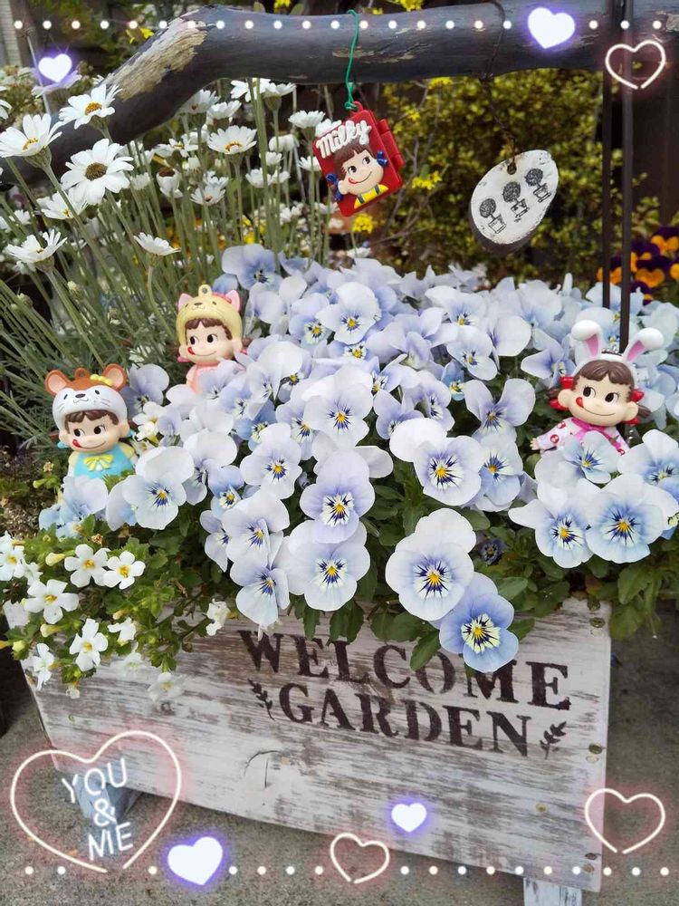 ペコちゃん、ビオラのお花畑でめっちゃ可愛いですね。