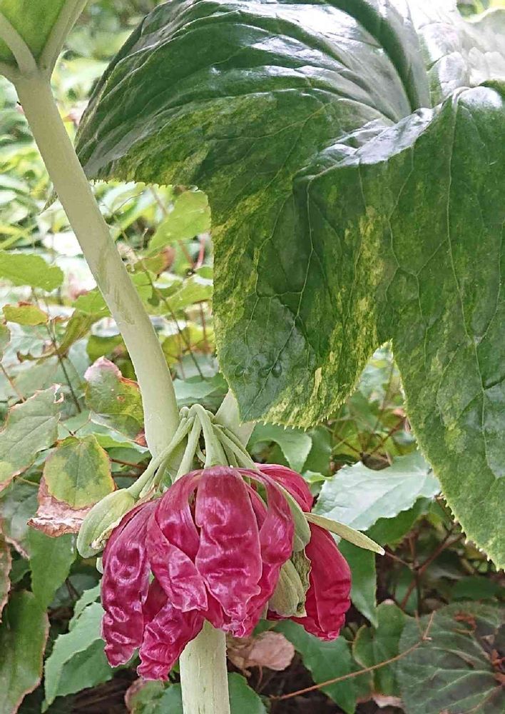 さん この葉っぱ…一枚の直径が40cmほどになるので… 折角の花が葉に隠れて横からでないと見えないんです☘️😅