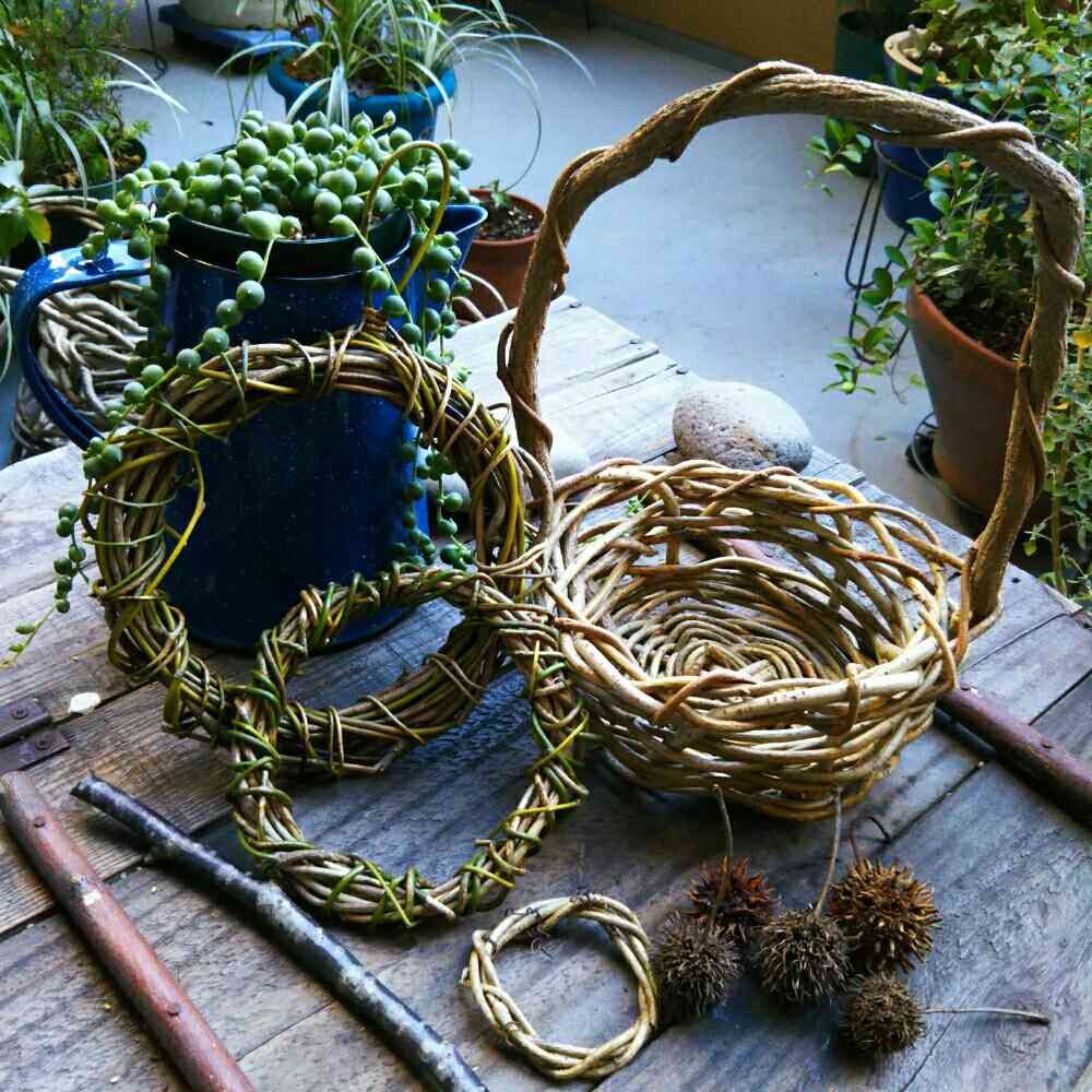 バルコニー/ベランダ,グリーンネックレス,つるで編んだかごの投稿画像