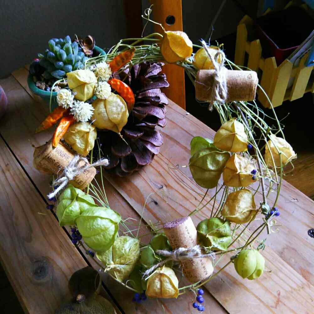 台はフウセンカズラの茎ですか?グリーンカーテンの後にリースにも使えてフウセンカズラ良いですね❣️
