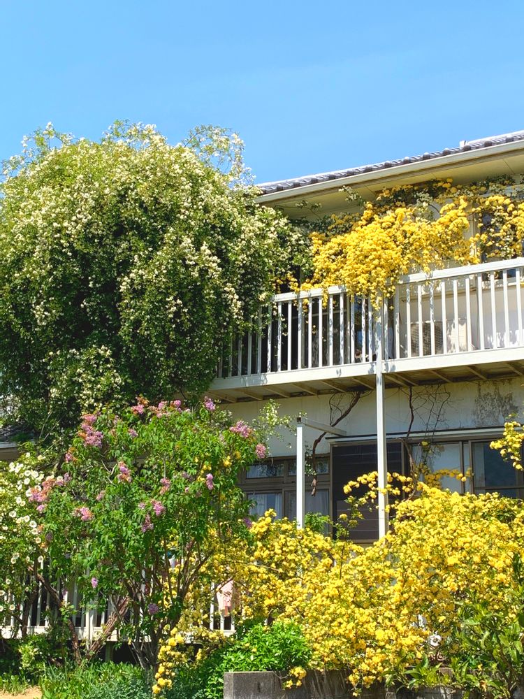 一階の庭に植えたものが2階まで伸びて屋根より高いモッコウバラは初めてみました😄