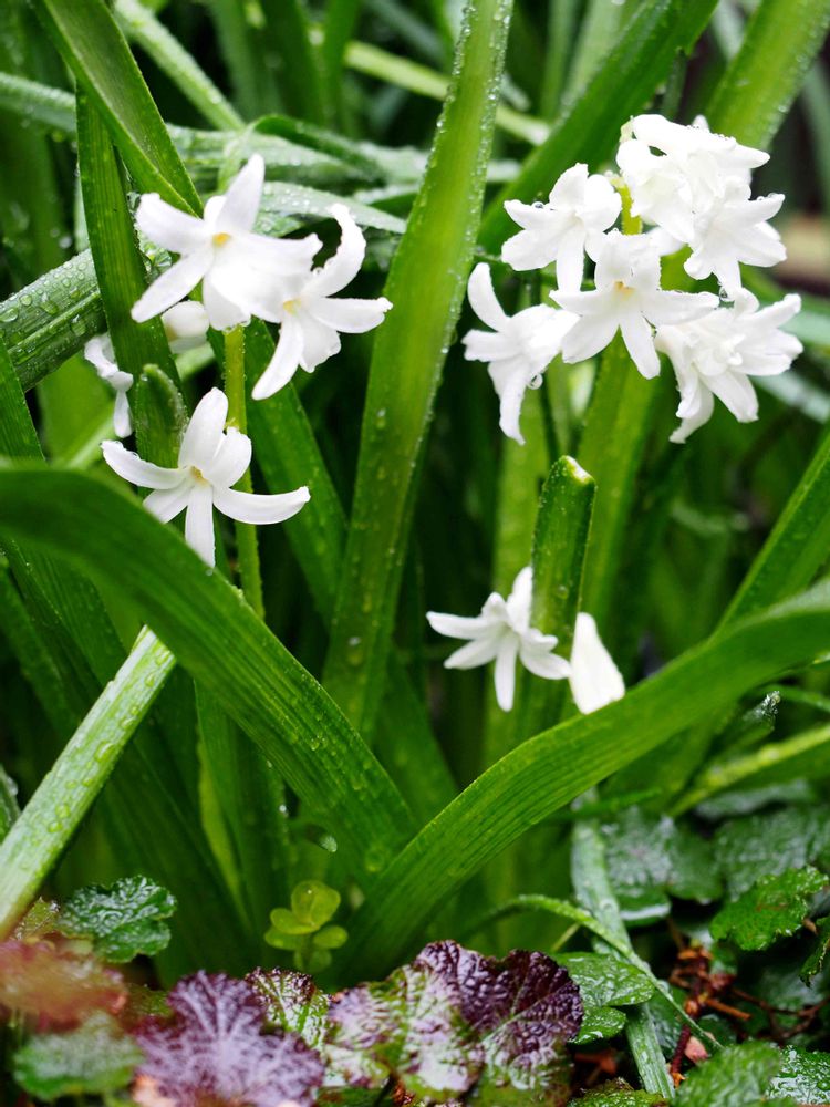 今年買い足した白のヒヤシンスは、半日陰の所に植えてみます♪