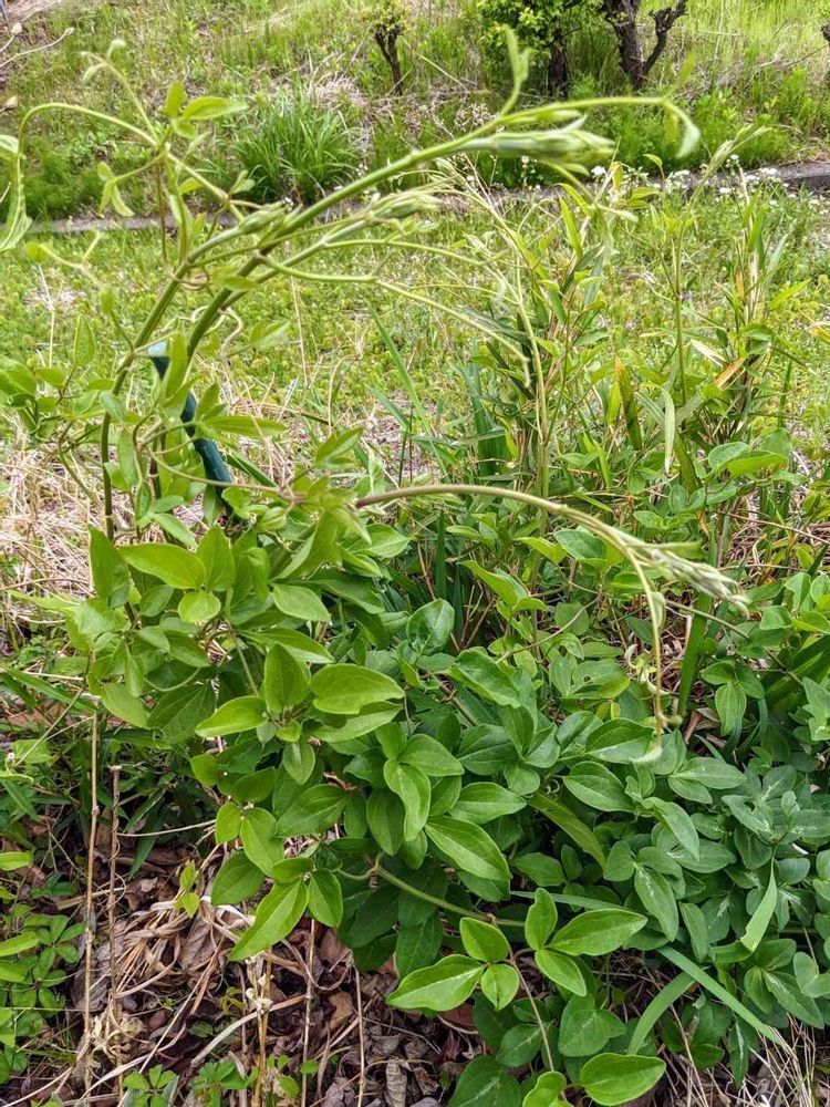 先日庭の斜面突端に、あれっクレマチス?と思えるものが出て来ました。…が今日行ってみると、すごい力強さで、何だか違う印象。蕾が開いて来る前にもし分かれば嬉しいのですが…。お分かりになりましたら、是非教えて下さい。🙏