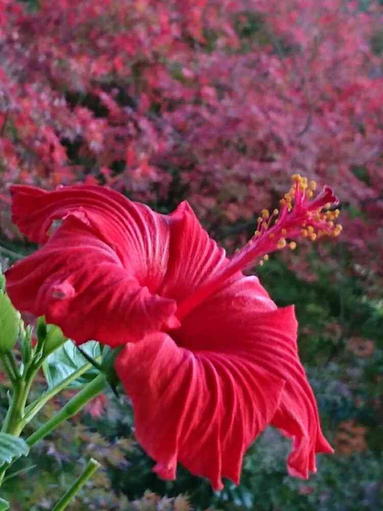 ハイビスカスはトロピカルな夏のイメージがあるから秋の紅葉と同じだと不思議な感じだね!