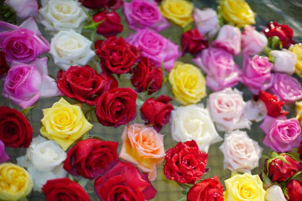 色とりどりの薔薇が綺麗ですね🌹お水に浮かんでるんでしょうか?