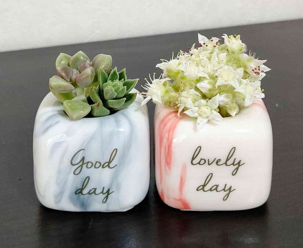 こんなに小さい入れ物なのに、ちゃんとお花が咲くんですね。