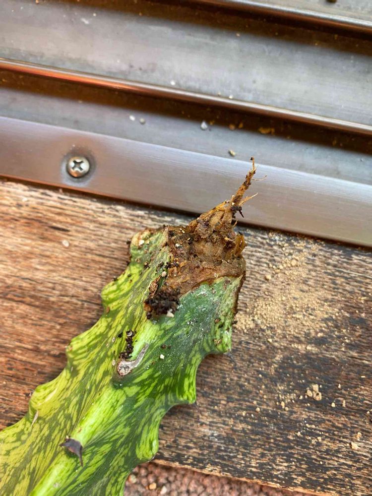 前に株分けしたイエローゴーストの親株?なのですが、下のところが腐ってる?のですが、この場合このまま乾くまで干した方が良いのか、それとも腐ったところをカットして何かした方が良いのか…よく分かりません😭💦