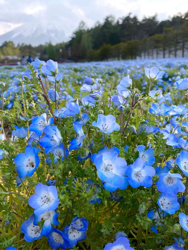 一面のネモフィラ💠に、少~し見える富士山🗻。綺麗ですね😍