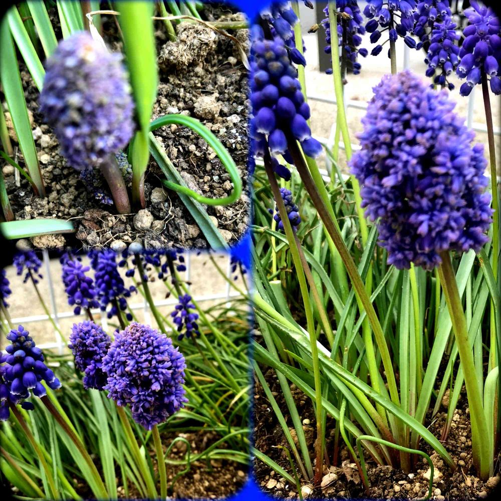 少し前(左上のpic)ムスカリのヘンテコな蕾ちゃんを発見٩(((*●´□`*))۶