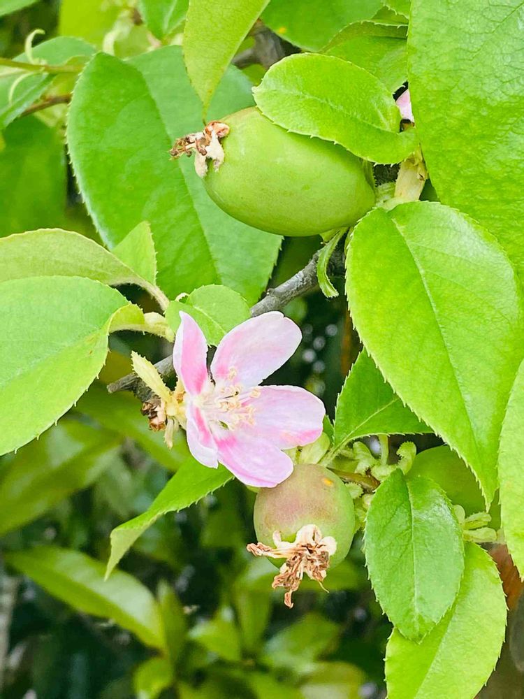 カリンの🟡とピンクの花がいい🌸と思います😄