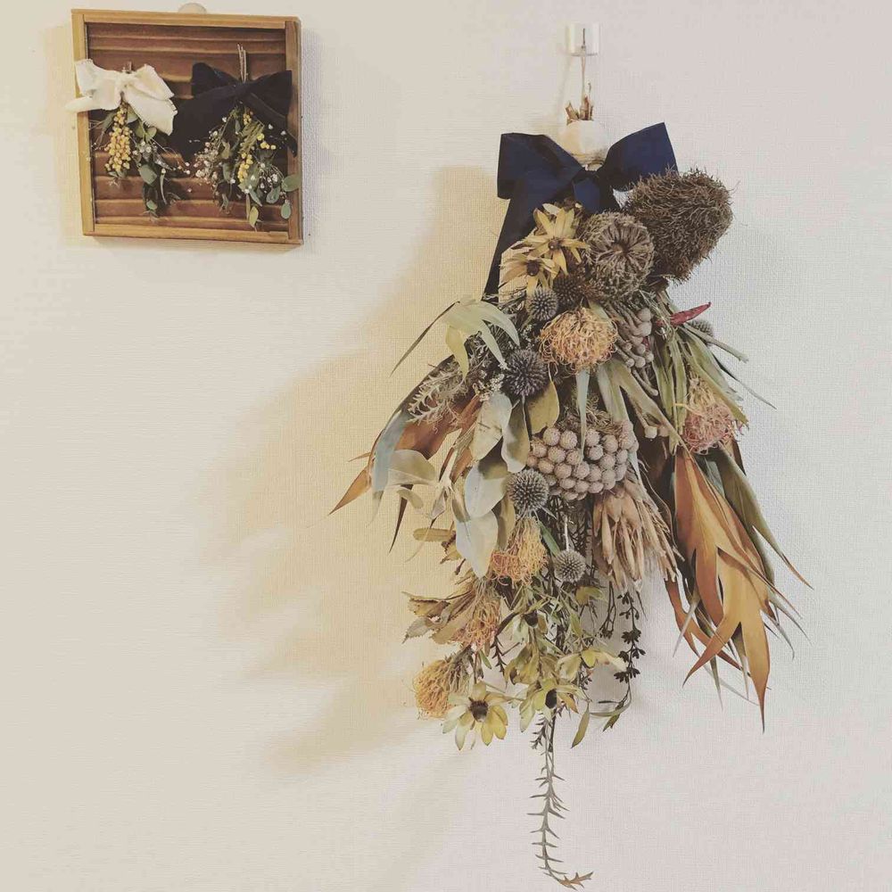 男の子が2人いるご家庭なので、ワイルドフラワーでカッコいい系のスワッグを✨