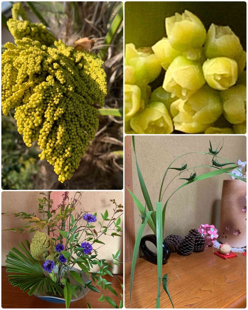 バッタですが、ススキで作ると手が切れそうで怖いですが、シュロの葉っぱなら安心です。是非作ってみて下さい。夏の夜は風流でいいですよ🤗