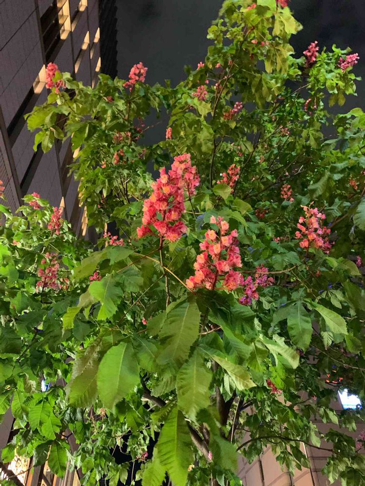 銀座のマロニエ通りには、このベニバナトチノキが綺麗に咲きます🌿🎵🎶