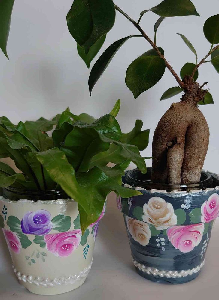 yubaraさんの手描きの、🌹薔薇🌹のリメ鉢🌹