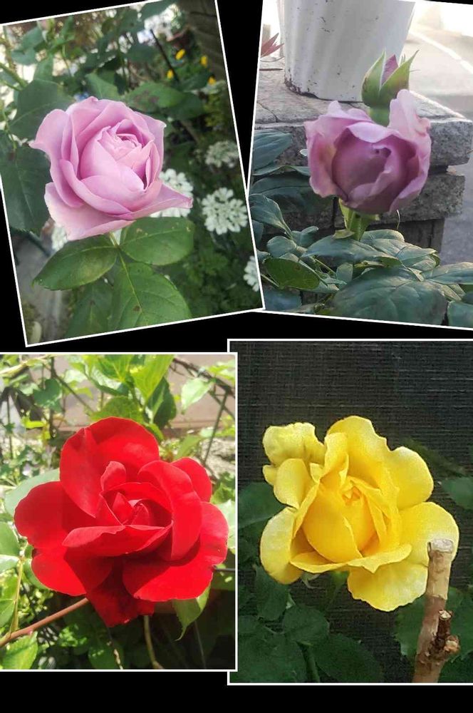 真っ赤の薔薇は去年 友達が挿し木のを貰って植えて今年は2年目で花がたくさん咲きまました。下からシュートも伸びたから半分カット✂🌿しました。