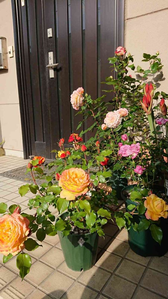 玄関前に、満開なってきた鉢植えの薔薇を移動😆💓💕❤️