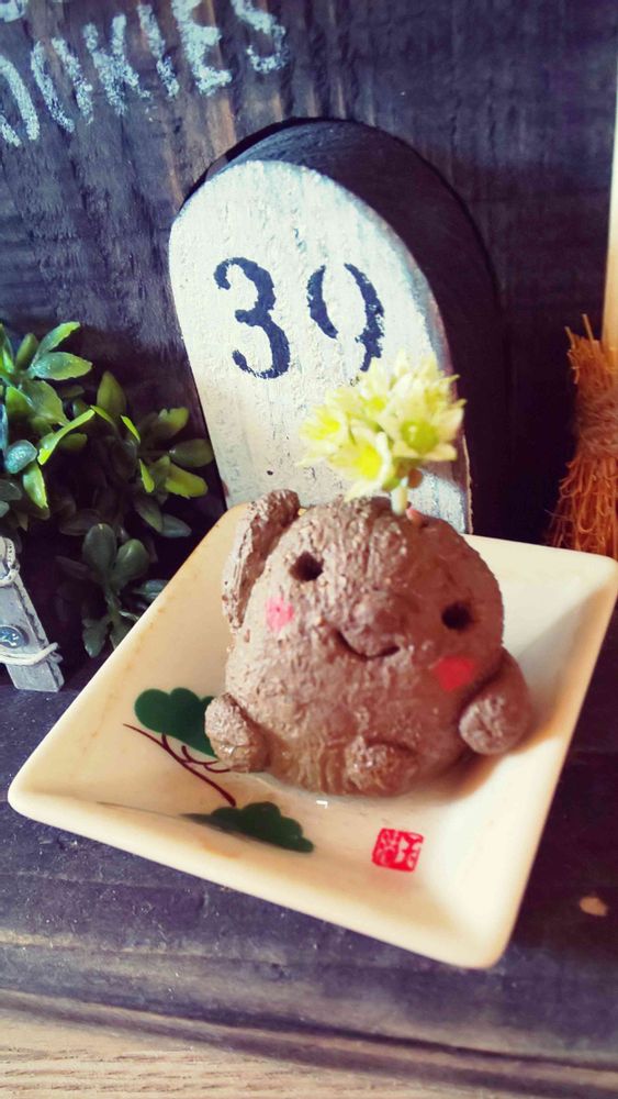 頭に一輪挿してお皿に水を張っておくとつちだまちゃんが水を吸うという…なんともほっこりしちゃいます🤗