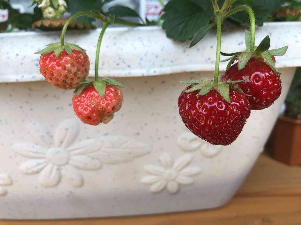小ぶりちゃんですが、右の方は明日の朝収穫して食べようかな🍓