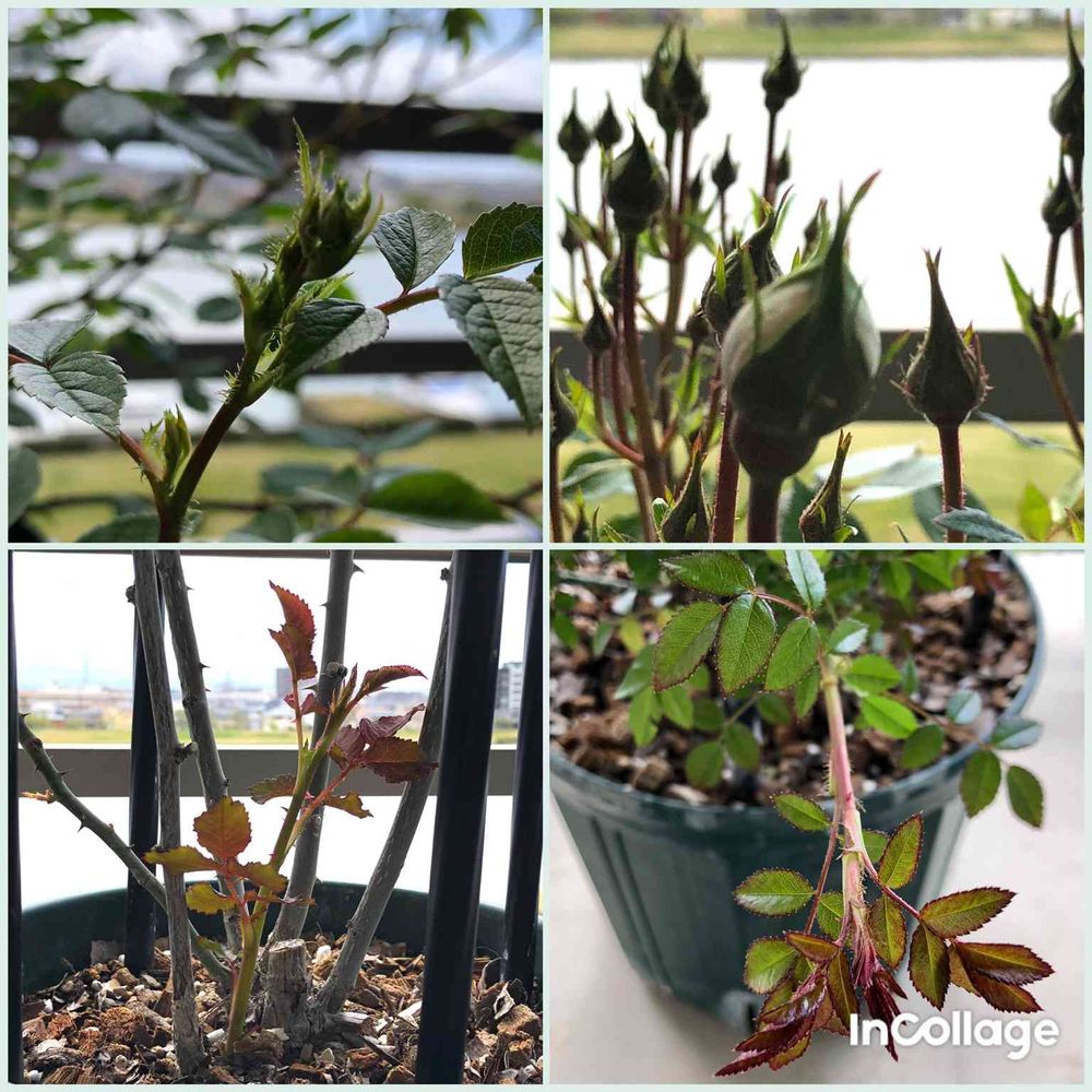 バラの蕾と新芽🌱