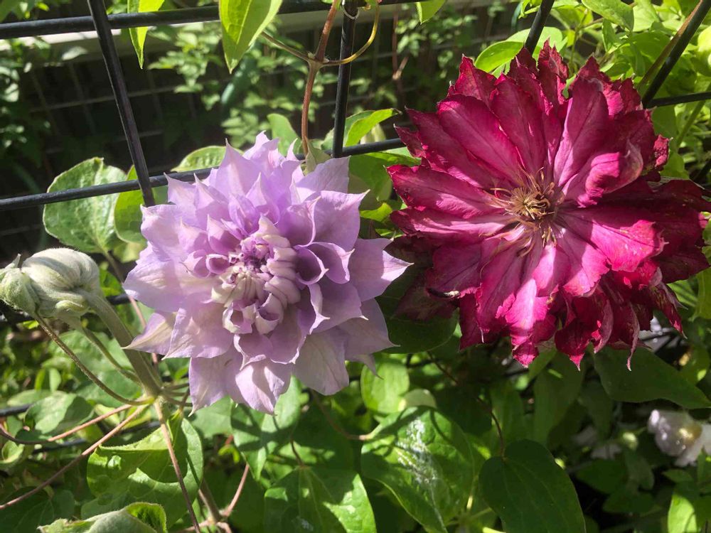 ほとんどが一つのオベリスクやトレリスに2種のクレマチスを植えています😊