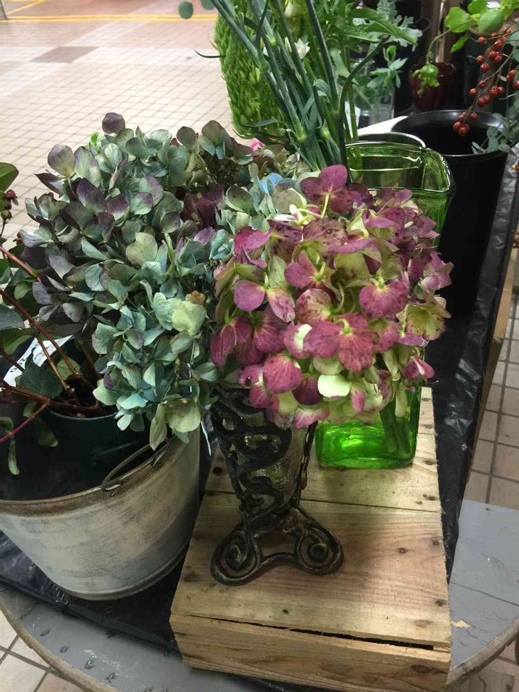 先週の土曜日の午後、母親の誕生日の花を買いに入った花屋さんで見つけた『秋色紫陽花』。