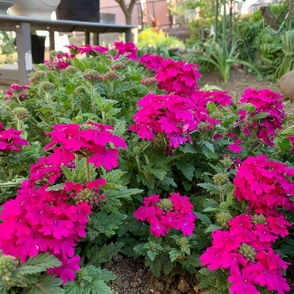 日当たりの良い庭に植えっぱなしで冬越ししてくれたバーベナ🌸大きく広がってたくさんのお花を咲かせてくれています。