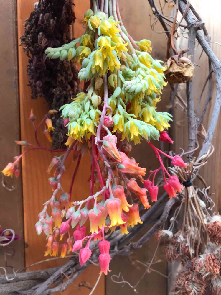 ほかにもながーく伸びた別のエケベリア達の花芽もついでに切って、束ねて吊るしました💐