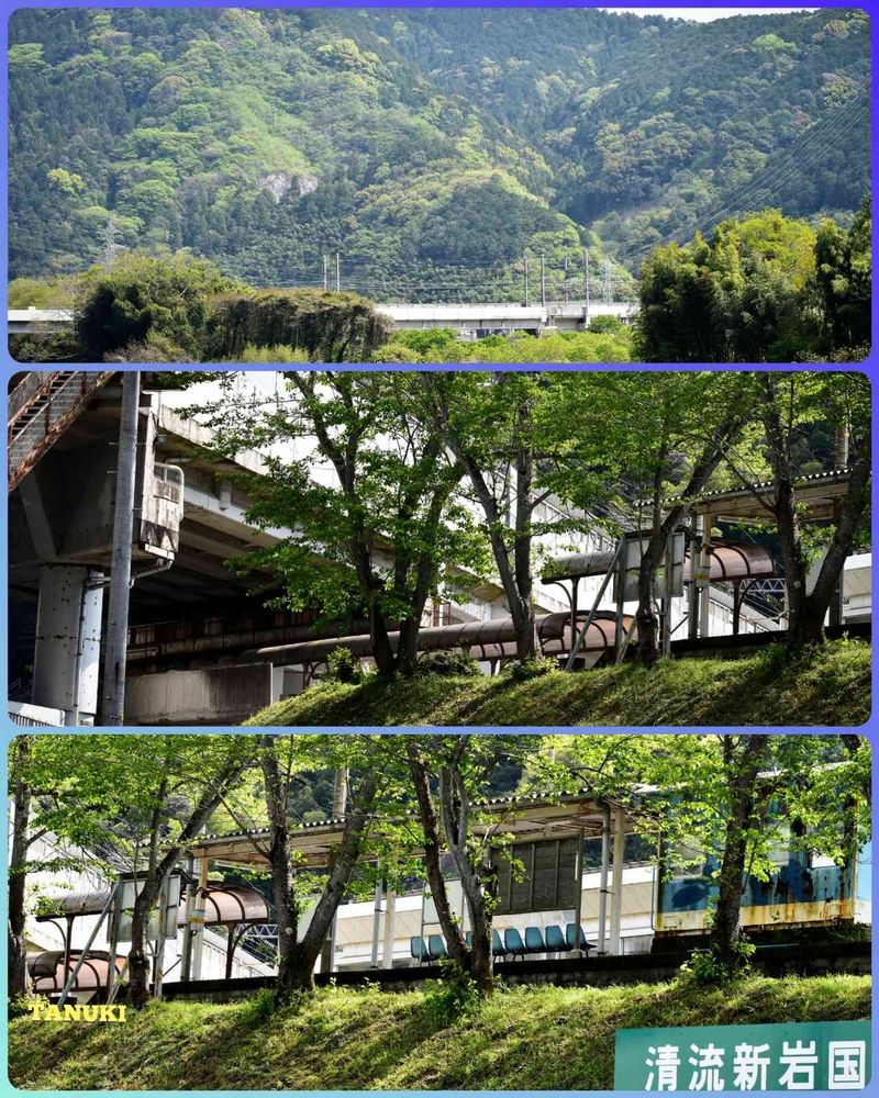 真ん中の写真の右手が«御庄 駅»です。左は先程の新幹線の高架です。この直ぐ左手に新岩国駅の駅舎があります。つまり、御庄 駅は新幹線を降りると、西へ徒歩で数分の所にあるのです。高架の右手は、また直ぐトンネルになります。