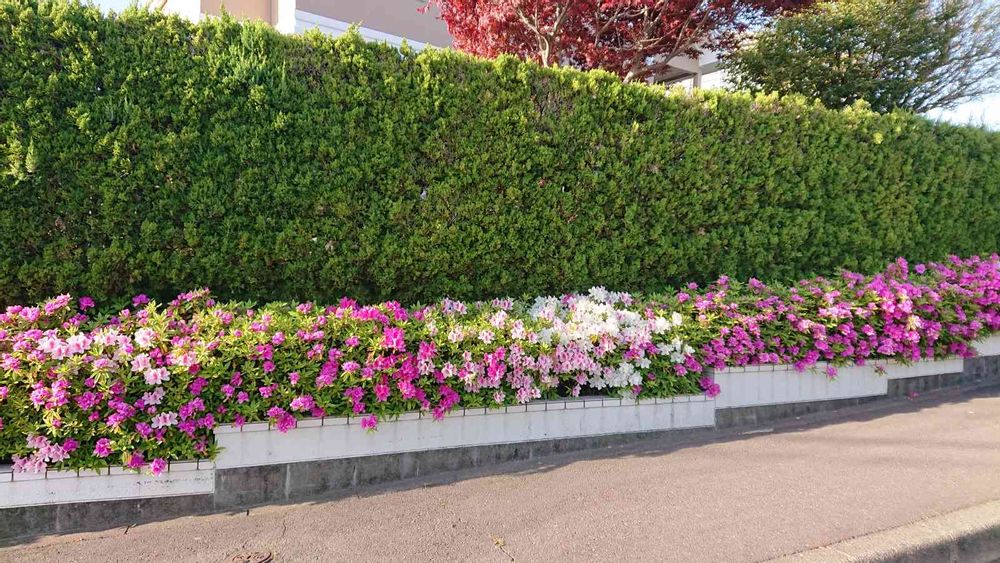 とっても長〜い植え込み、ツツジがたくさん咲いて壮観ですね✨
