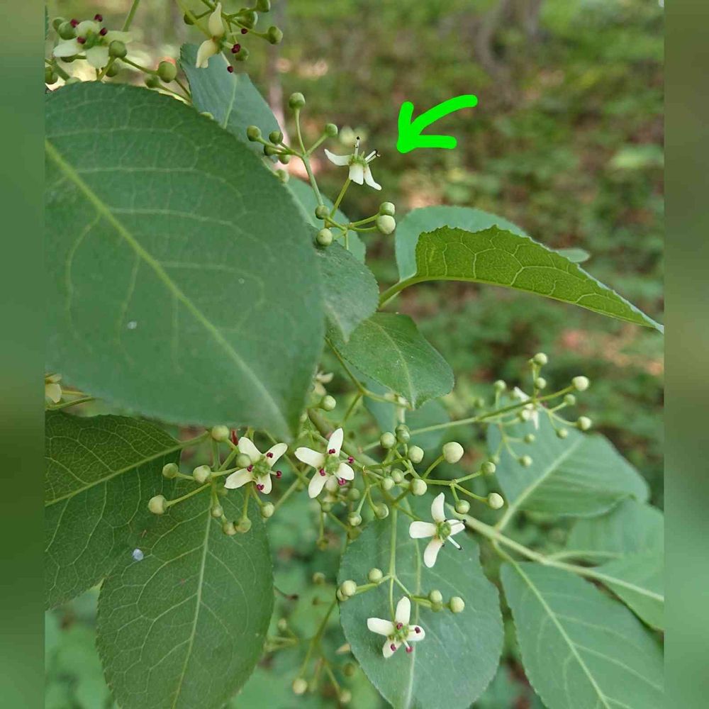 先日upしたツリバナと同様、花色は薄い黄緑色。花びらは、5枚でなく4枚💚。なので、秋に赤く熟すと4つに割れます。