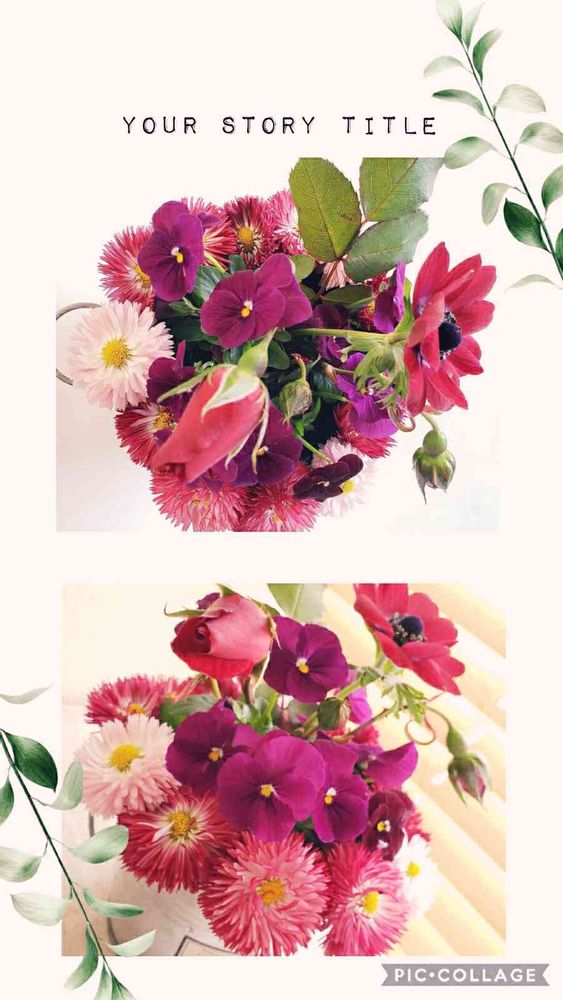 さん、おはよう☀️😃❗今日もさらっと気持ちのよい天気☀️デイジーもそろそろ徒長してきたので、思いきりました~😆デイジーは15本も使って、ビオラが5本、アネモネ1本、バラ3本!!あかと紫集めたら、美味しそう🎵