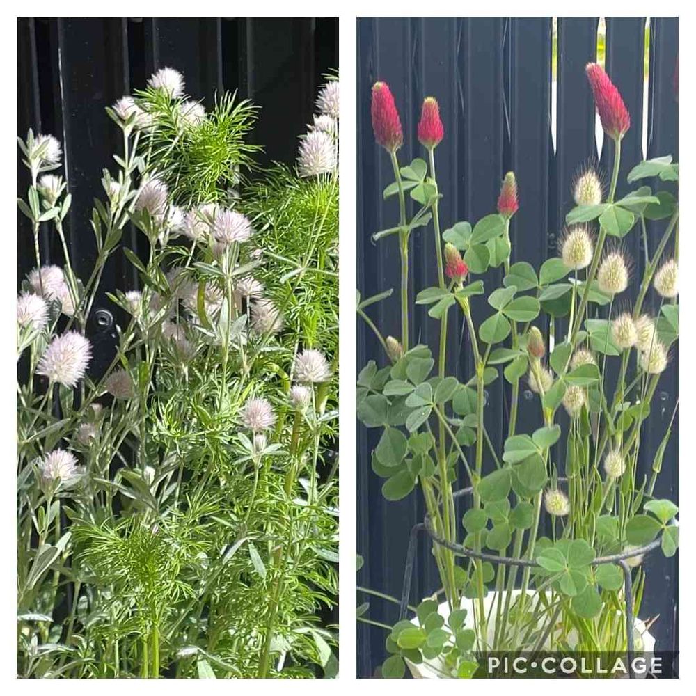 こぼれ種からのニゲラとトリフォリウム🐰の背くらべ