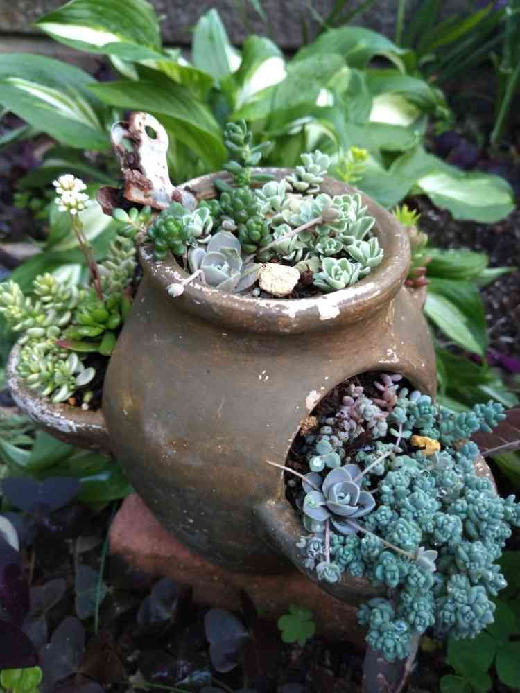 土こぼれするならバークチップとかゼオライト入れたり セダムをパラパラ撒くと秋に楽しめるし、低めの木立くんを挿したらいいのに☺️🍀