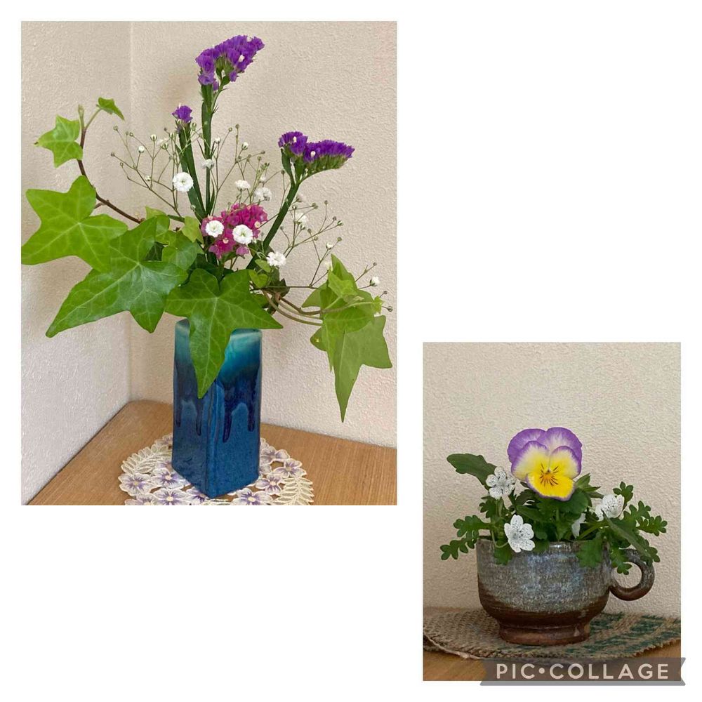 カップだと☕️コーヒーも冷めにくいのでしょうね。今はビオラとネモフィラさんがのんびり浸かってる💞