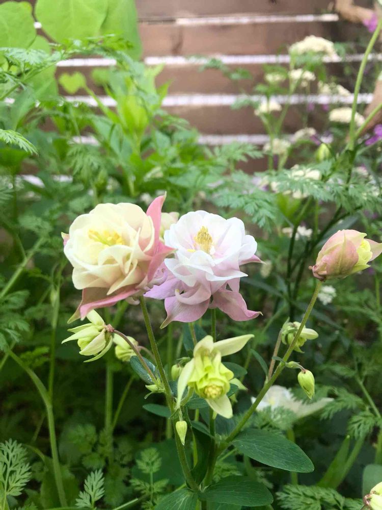 小さな庭,ライスフラワー,オダマキ ウインキーダブルローズホワイトの投稿画像