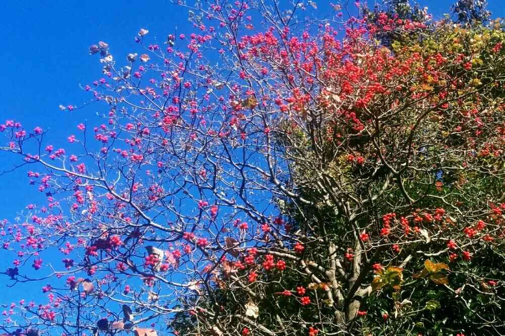 綺麗な青空と、ハナミズキの、紅葉ですね。😆清々しい。