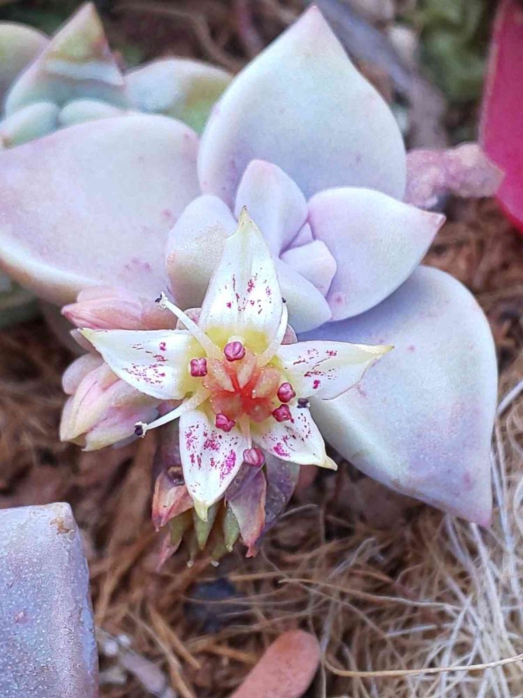多肉ちゃんにつぼみがついてたのでどんなお花が咲くのか楽しみにしていたら、ちょっと変わったお花が咲きました。