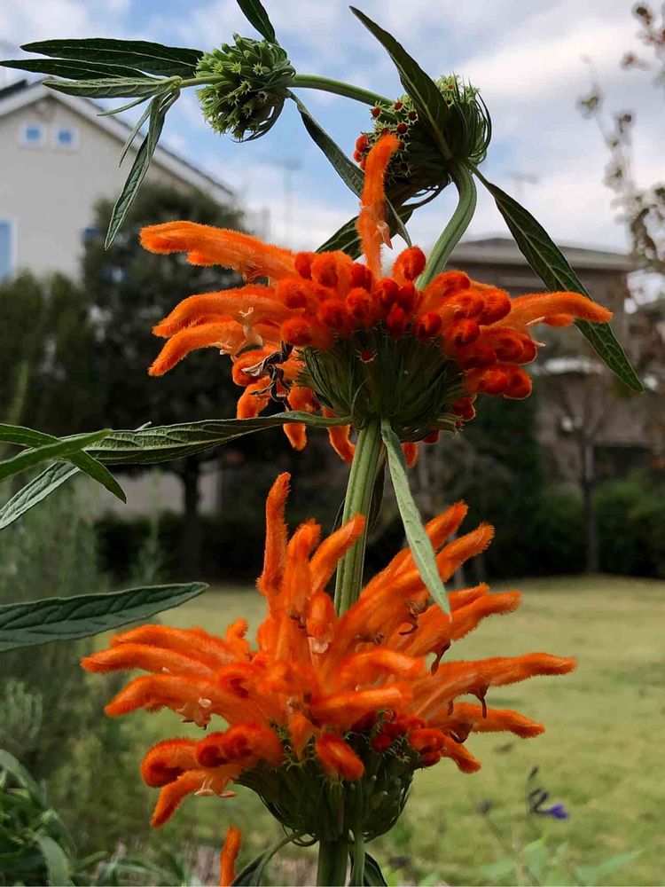 別名ライオンズイヤー ライオンの耳 の意。アフリカ産のシソ科だそうです。写真と本物ってやはり違いますよね‼️ かなり衝撃的な植物でした。教えて下さった方は、本物は見てないそう!