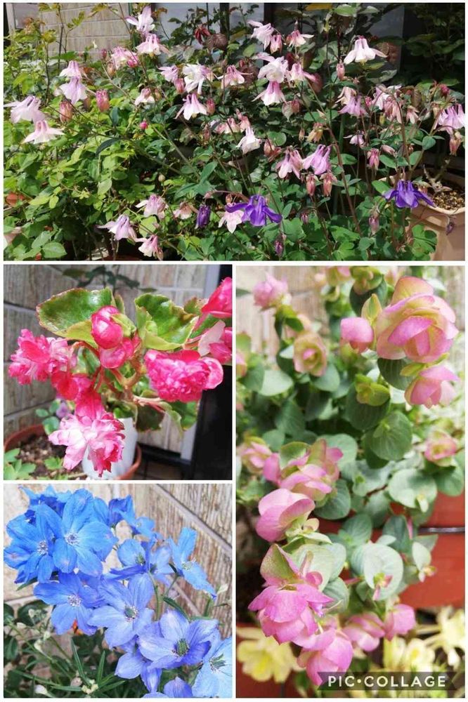 鉢植えのオダマキがワサワサ😂あふれそうに咲いてます